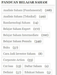 Anda bisa mencari materi2 belajar saham di web ini yang sesuai dengan kebutuhan anda. Anda bisa mencari melalui label di menu kanan bawah web ini. Dan semua tulisan2 di web Saham Gain bisa anda akses secara free. Berikut tampilannya:
